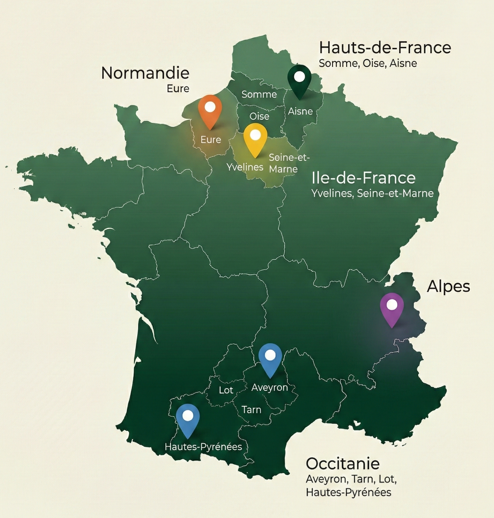 Nous couvrons 7 régions principales