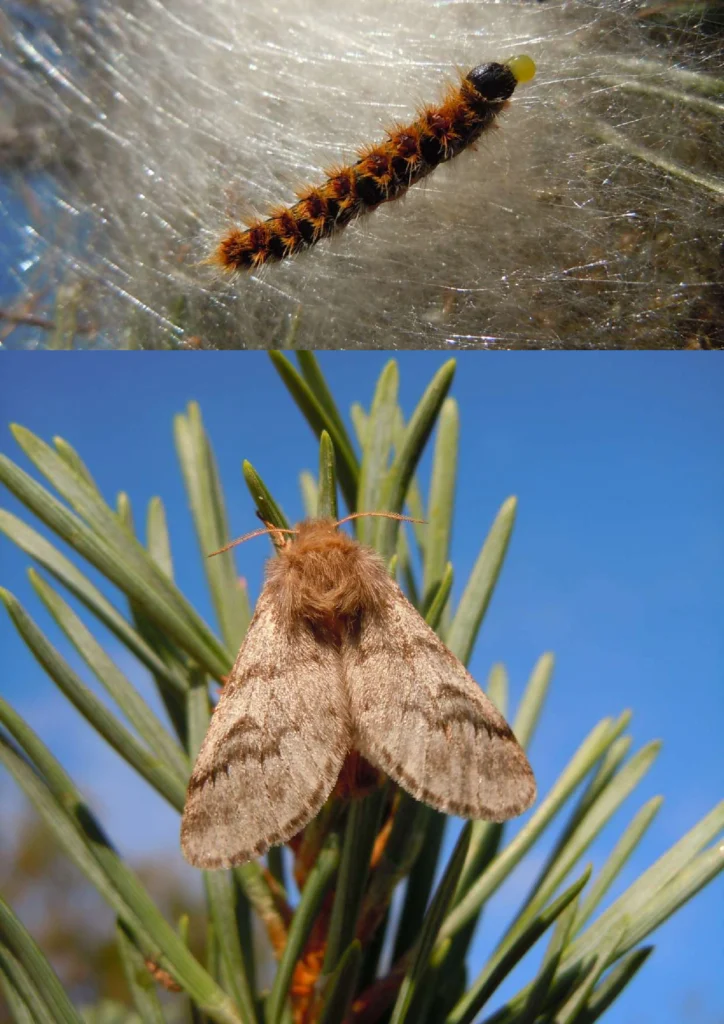 Processionnaire du pin : chenille et papillon
